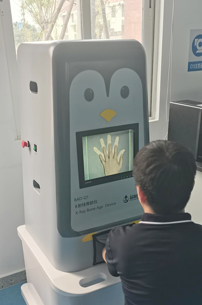 品源醫(yī)療X射線骨齡儀的便捷操作體驗(yàn)也為日常使用帶來便利。配備的手部限位圖、監(jiān)控屏監(jiān)控?cái)[位以及軟件視頻監(jiān)控功能組成的三方位定位系統(tǒng),能幫助操作人員快速、準(zhǔn)確地定位檢測(cè)區(qū)域,減少重復(fù)拍攝,提升檢測(cè)效率。雙監(jiān)控顯示窗口的設(shè)計(jì),使操作人員與被檢者可同步觀察擺位情況,增強(qiáng)檢測(cè)過程的透明度與互動(dòng)性。此外,BAD-Q1采用企鵝造型的卡通化外觀設(shè)計(jì),色彩柔和,兒科專用參數(shù)設(shè)置避免過度曝光,充分考慮受檢人群心理與生理特點(diǎn),緩解在檢測(cè)時(shí)的緊張情緒,保障檢測(cè)的安全性與舒適性。