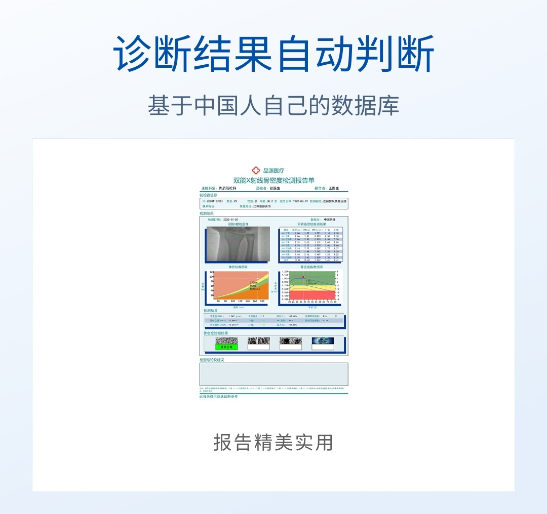產(chǎn)品用途:本儀器應(yīng)用廣泛,適用于骨科醫(yī)院、康復(fù)醫(yī)院、體檢中心、保健中心、老年病醫(yī)院、療養(yǎng)院、大型社區(qū)醫(yī)院,綜合醫(yī)院的內(nèi)分泌科、骨科、骨質(zhì)疏松科、老年病科、體檢科,康復(fù)科等。